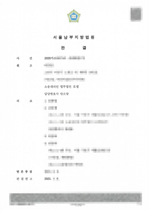 변론과정에서 피고 C, D(임대임 측)는 이 사건 계약 해제에 따라 보증금을 반환하면서 향후 일체의 책임을 지지 않는다는 문구가 삽입된 영수증을 제출하여 임대인 측에게는 실질적으로 책임을 추궁하기 어려운 상황이었습니다. 피고 A, B(공인중개사 측)는 공인중개사로서 설명의무를 다하였다는 취지로 주장하였고 특별한 사정이 없는 이상 공인중개사 측에 중개료 이상의 손해배상책임을 지우는 경우는 드물어서 책임 추궁이 쉽지 않았습니다.