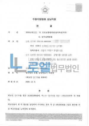 로엘법무법인은 1) 경찰 조사 참여, 2) 변호인 의견서 작성 및 제출, 3) 법정변론 등을 통하여 검찰 구형보다 감형된 [벌금형] 판결을 받았습니다.